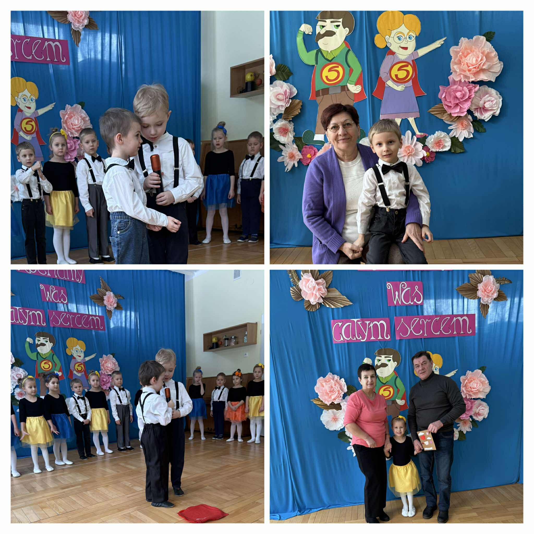 Z okazji Dnia Babci i Dziadka dzieci z grupy „Tropiciele” przygotowały wyjątkowy występ artystyczny. Przedszkolaki z wielkim zaangażowaniem i uśmiechem na buzi recytowały wiersze, śpiewały piosenki oraz zaprezentowały energiczny taniec w rytmie rock and rolla. Nie zabrakło również wspólnego, radosnego odśpiewania tradycyjnego „Sto lat”, które wywołało wiele uśmiechów i wzruszeń wśród zaproszonych gości. Na zakończenie dzieci wręczyły swoim Babciom i Dziadkom własnoręcznie wykonane laurki jako wyraz miłości i wdzięczności. Uroczystość zakończyła się wykonaniem pamiątkowych zdjęć, które na długo pozostaną pięknym wspomnieniem tego wyjątkowego dnia.