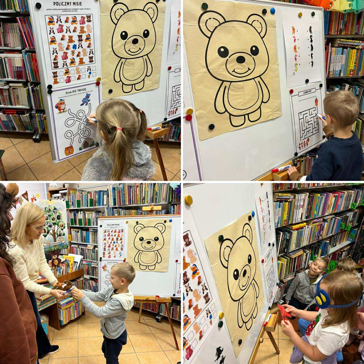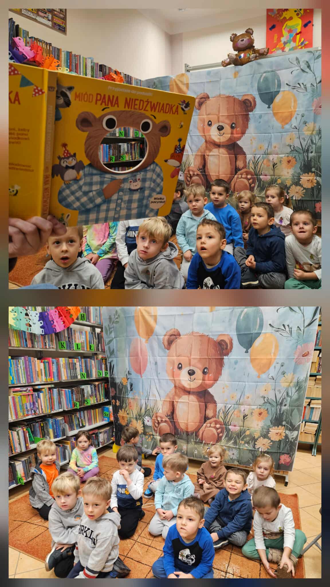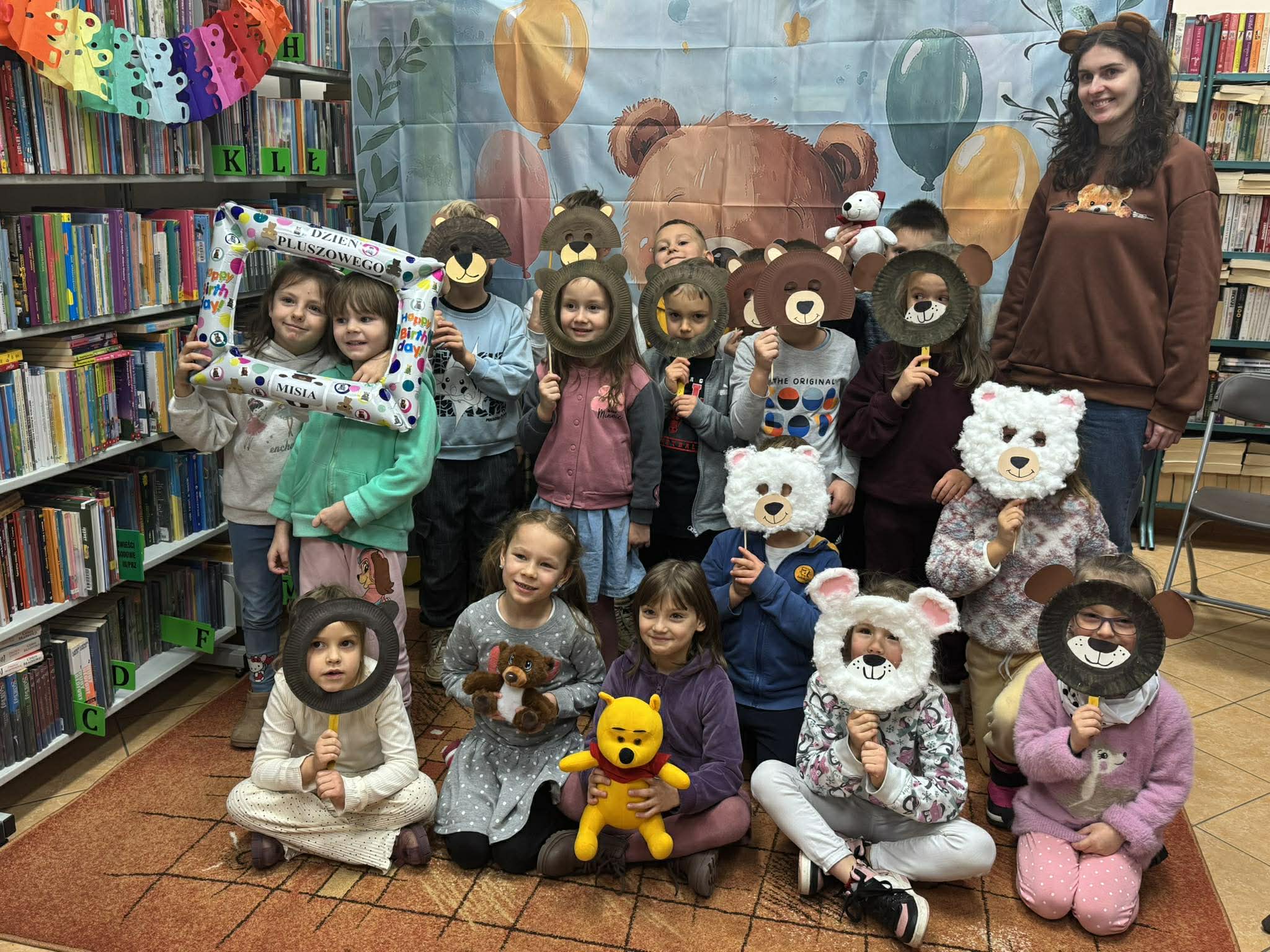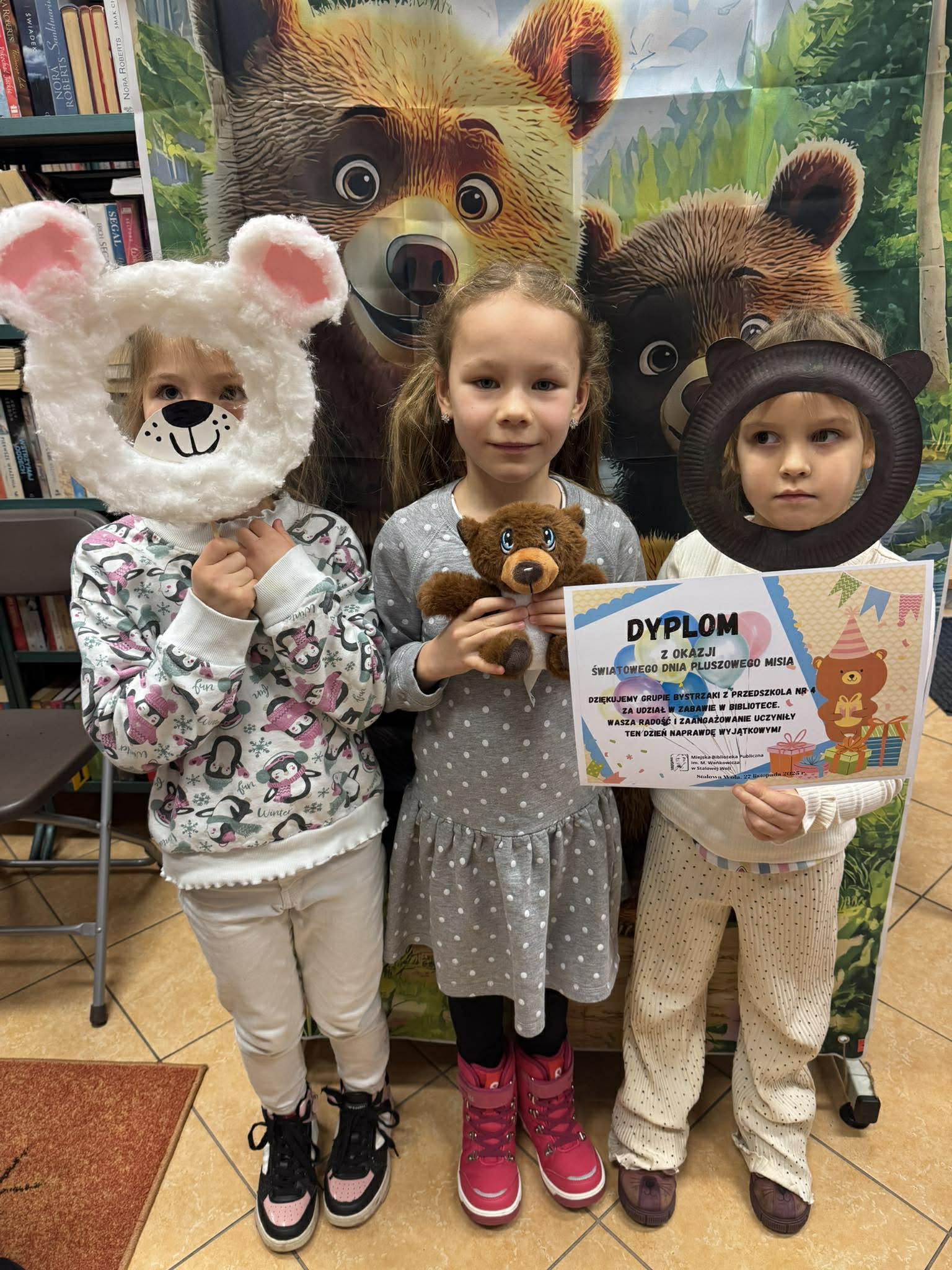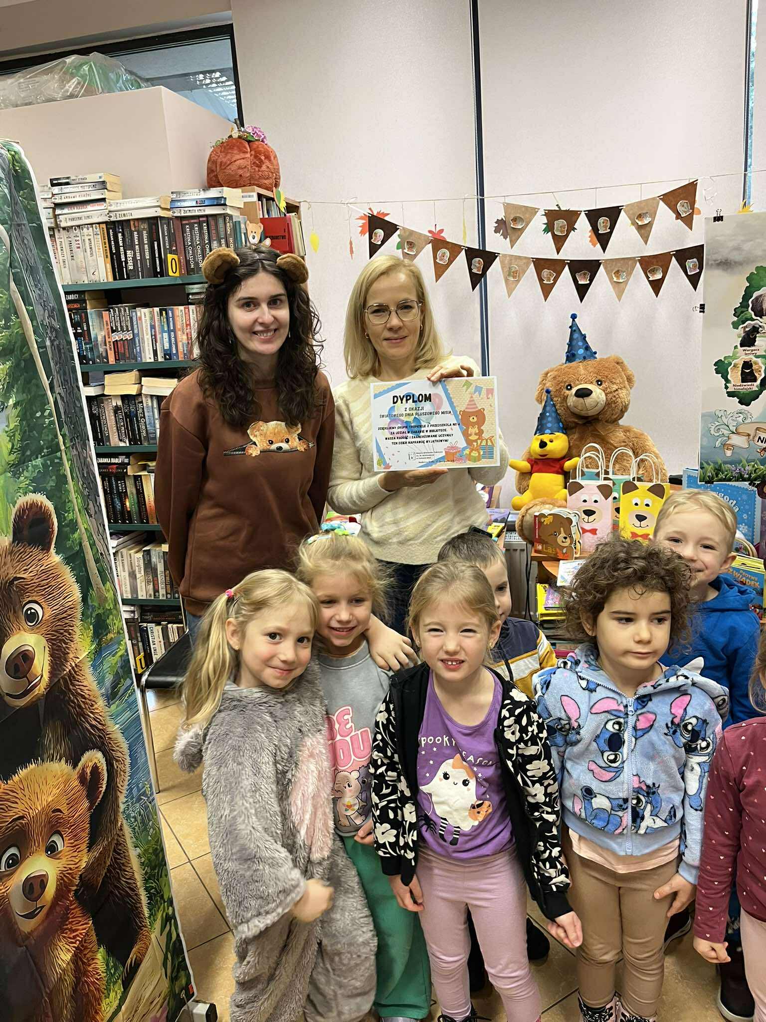 Dnia 27 listopada przedszkolaki wybrały się do Miejskiej Biblioteki Publicznej im. M. Wańkowicza aby świętować Dzień Pluszowego Misia. Panie z biblioteki przygotowały dla dzieci wyjątkowe zajęcia poświęcone historii i tradycji pluszowego misia, były również różnorodne zagadki i quizy tematyczne, dzięki którym dzieci mogły wykazać się swoją wiedzą o znanych misiowych bohaterach. Na zakończenie odbyły się wesołe konkursy, w których dzieci chętnie brały udział. Spotkanie przebiegło w radosnej atmosferze, a dzieci z entuzjazmem uczestniczyły we wszystkich przygotowanych atrakcjach. Dziękujemy pani Renacie i pani Monice za przygotowanie wyjątkowego Dnia Pluszowego Misia.