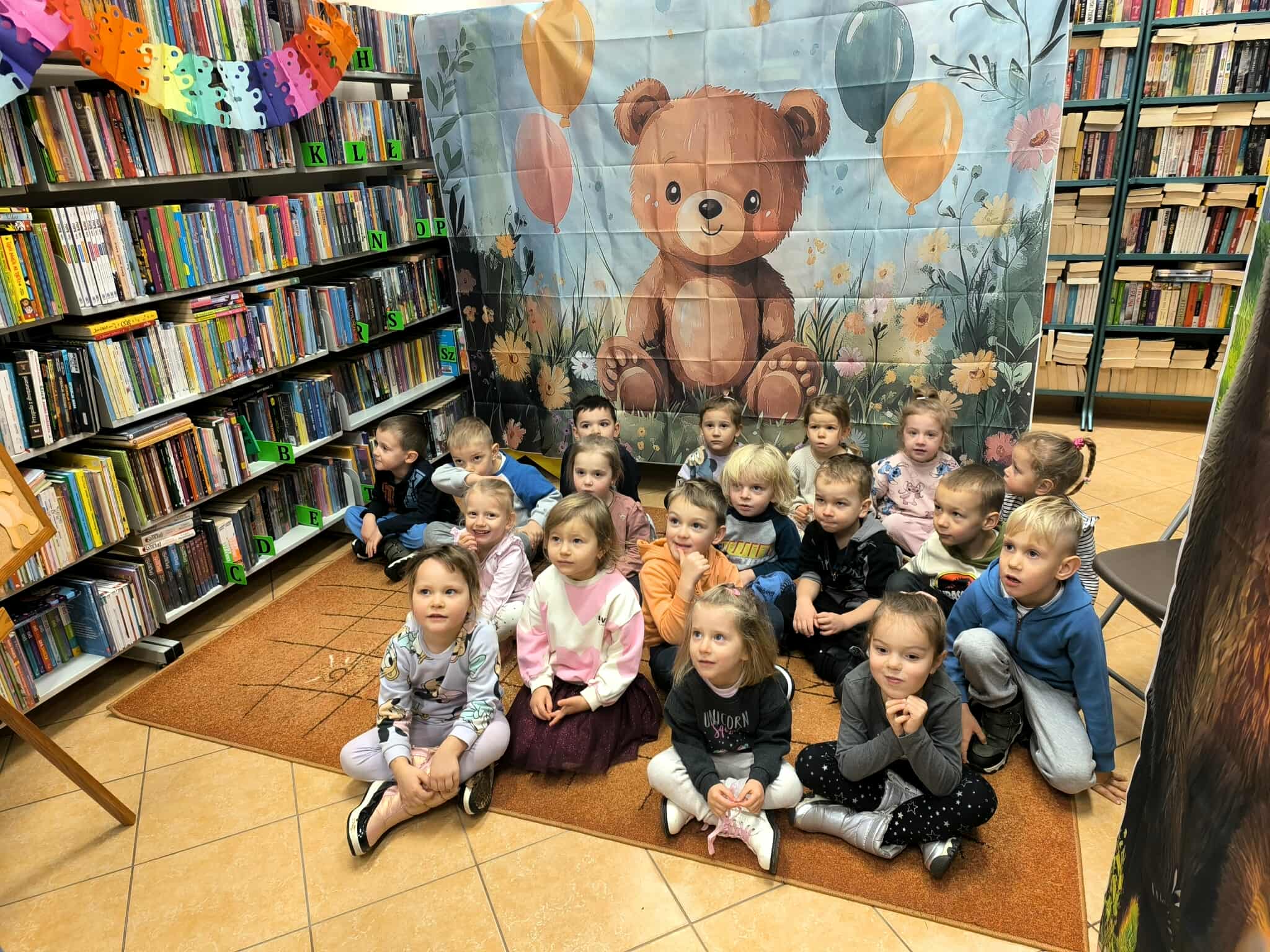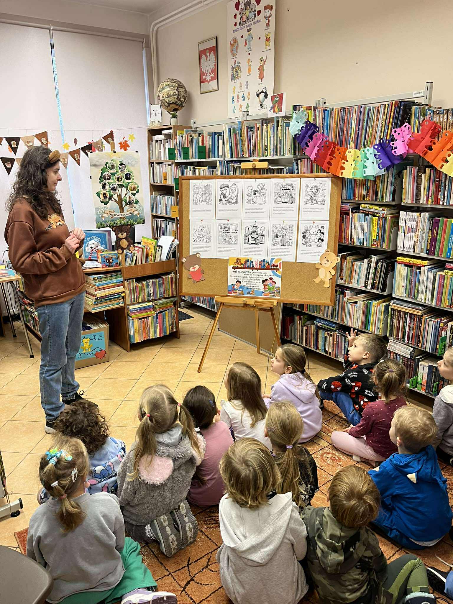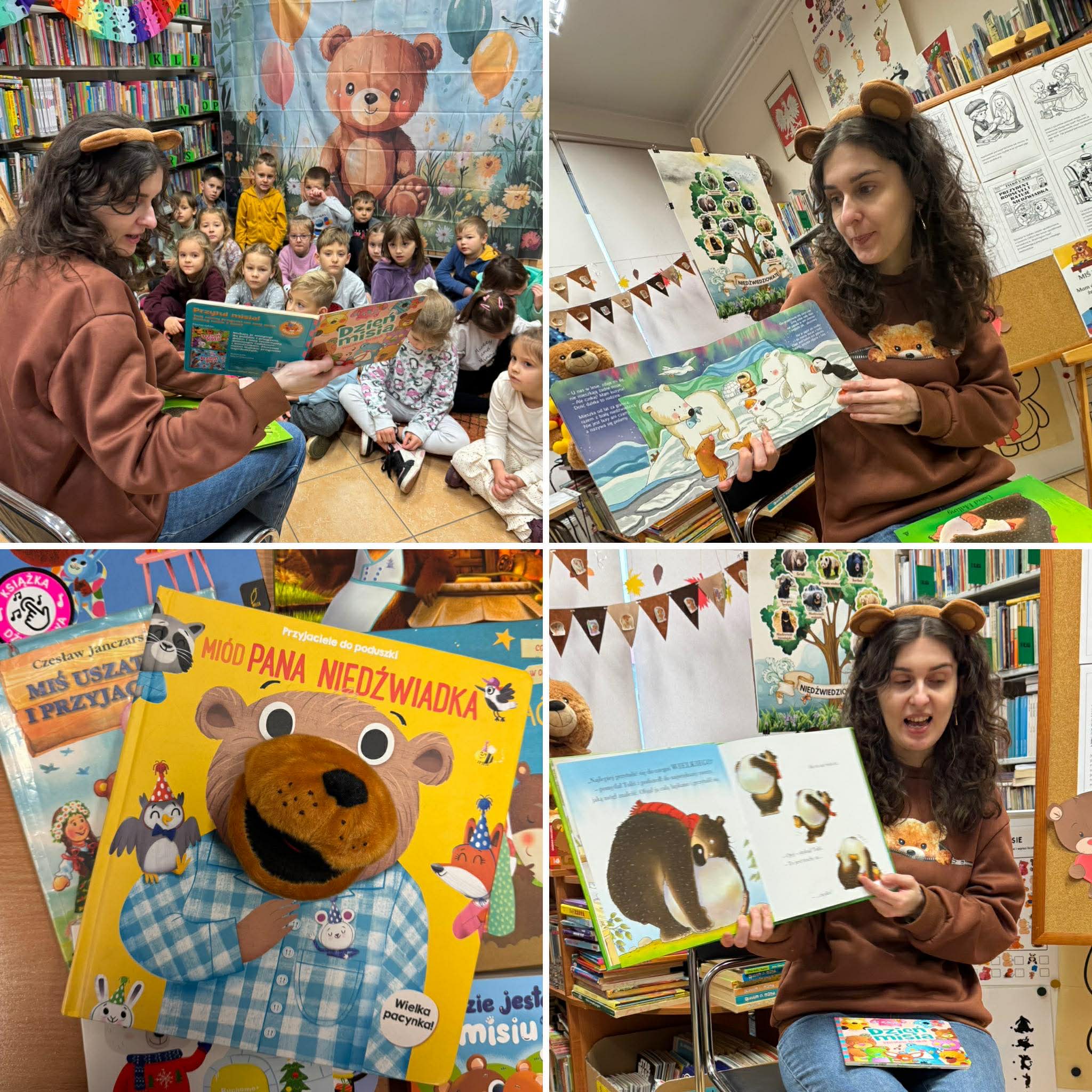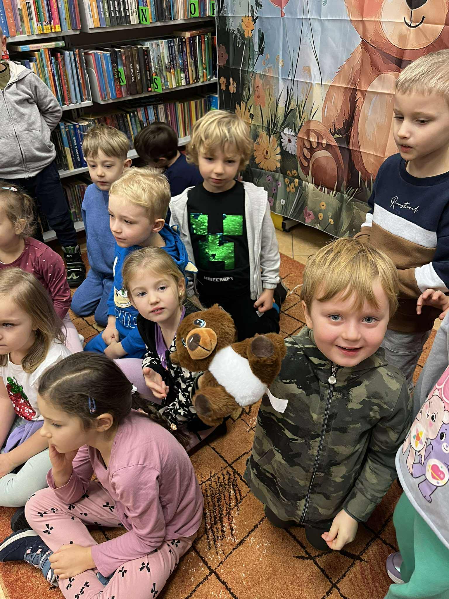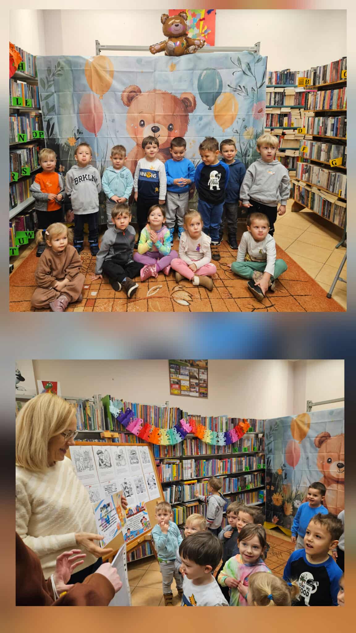 Dnia 27 listopada przedszkolaki wybrały się do Miejskiej Biblioteki Publicznej im. M. Wańkowicza aby świętować Dzień Pluszowego Misia. Panie z biblioteki przygotowały dla dzieci wyjątkowe zajęcia poświęcone historii i tradycji pluszowego misia, były również różnorodne zagadki i quizy tematyczne, dzięki którym dzieci mogły wykazać się swoją wiedzą o znanych misiowych bohaterach. Na zakończenie odbyły się wesołe konkursy, w których dzieci chętnie brały udział. Spotkanie przebiegło w radosnej atmosferze, a dzieci z entuzjazmem uczestniczyły we wszystkich przygotowanych atrakcjach. Dziękujemy pani Renacie i pani Monice za przygotowanie wyjątkowego Dnia Pluszowego Misia.
