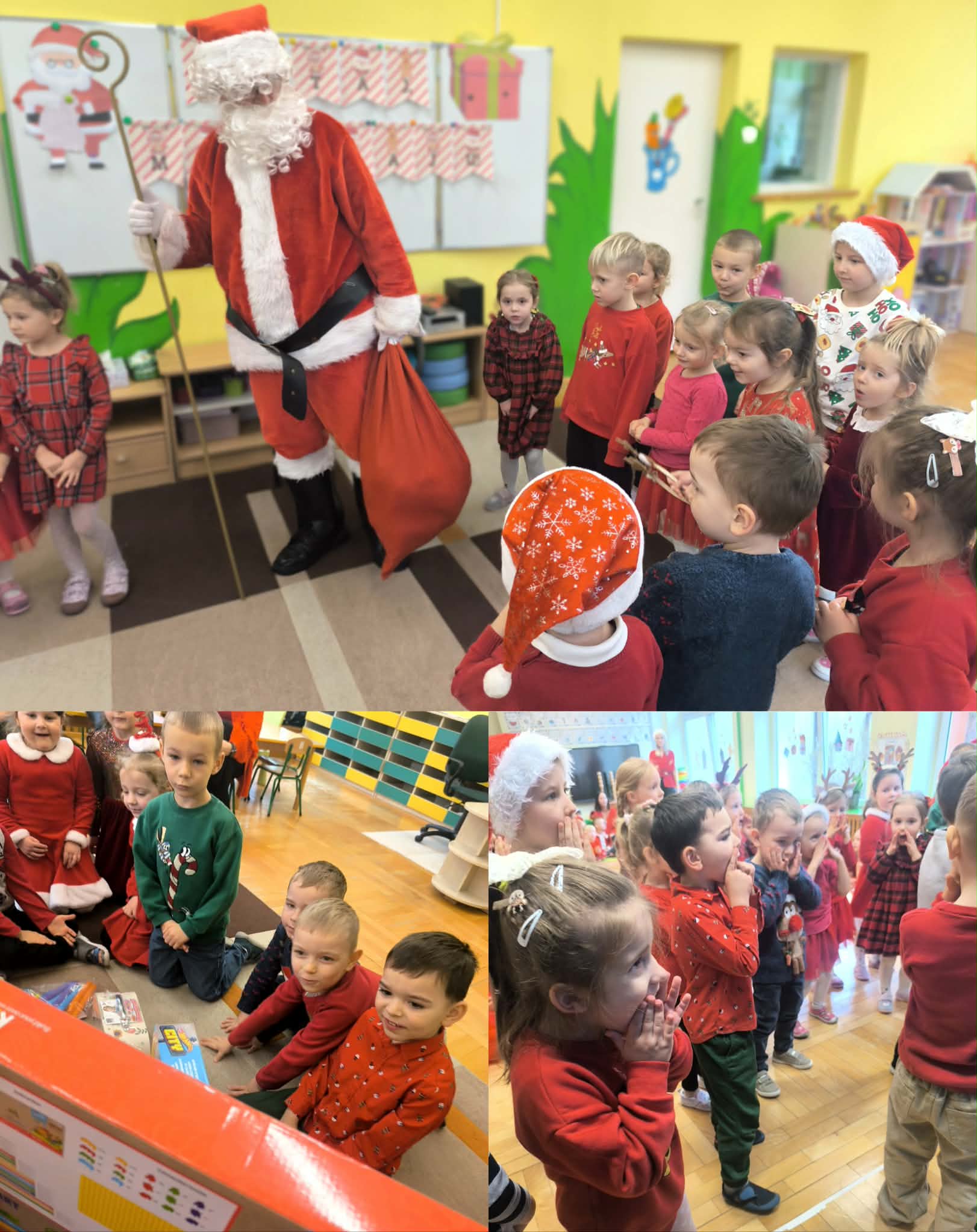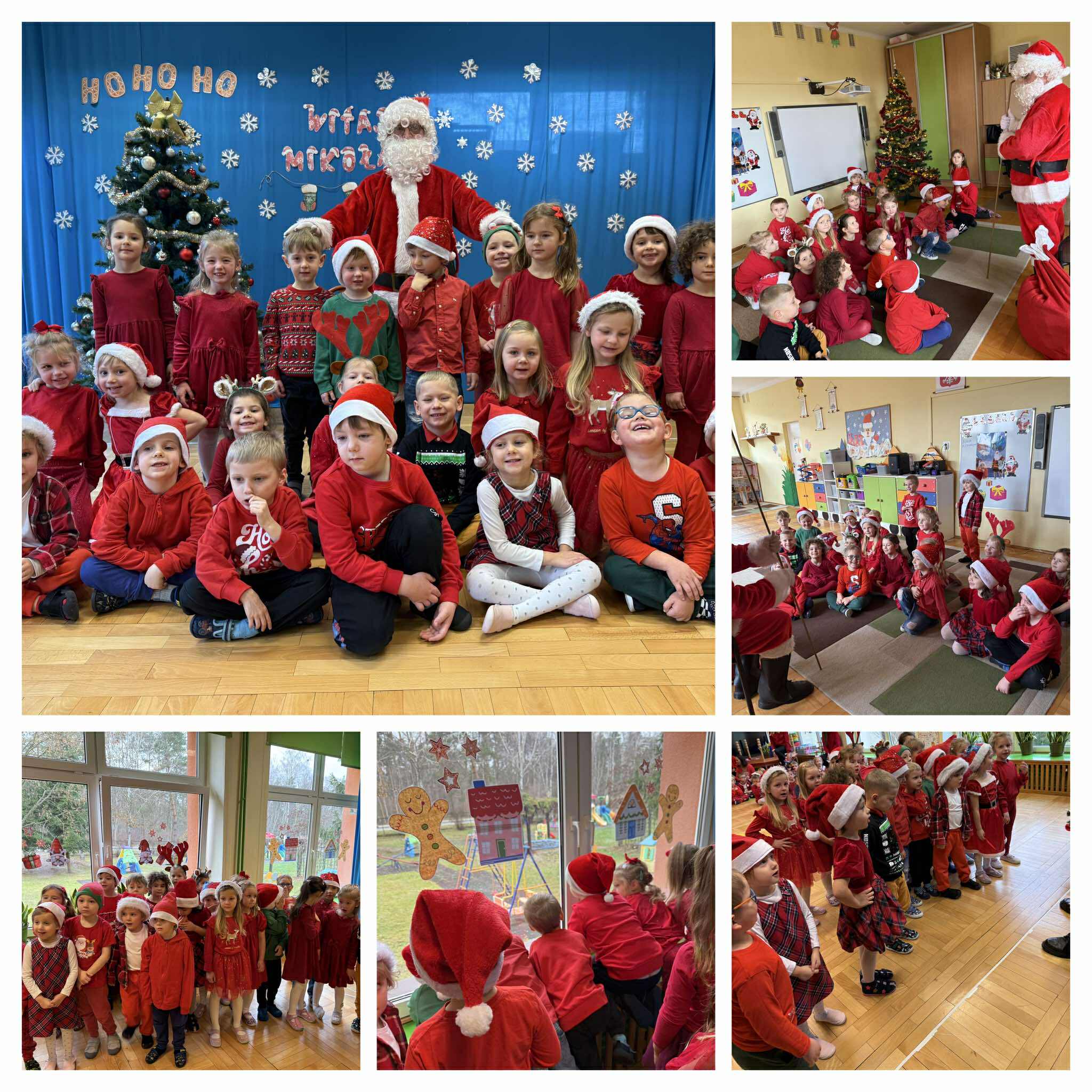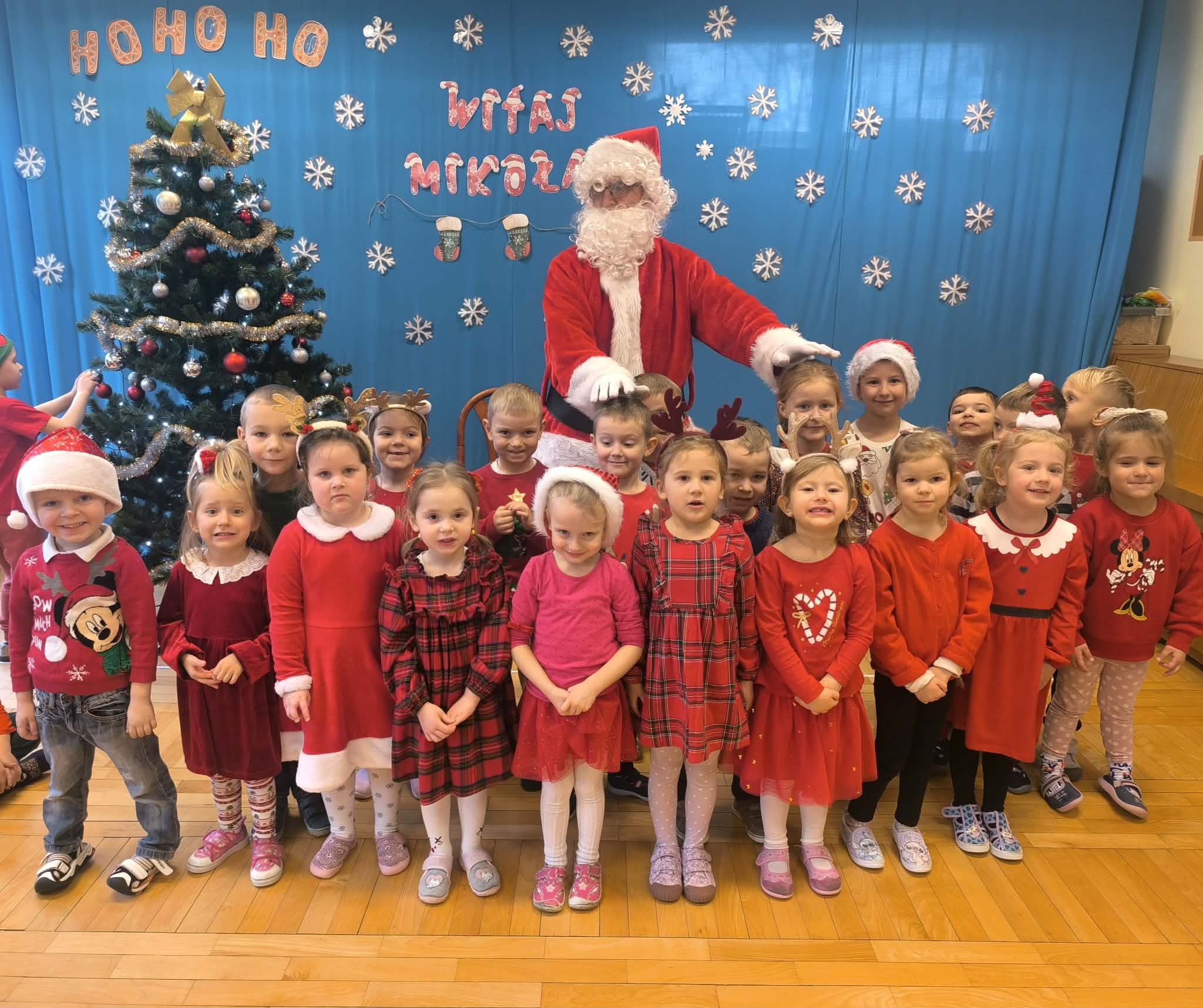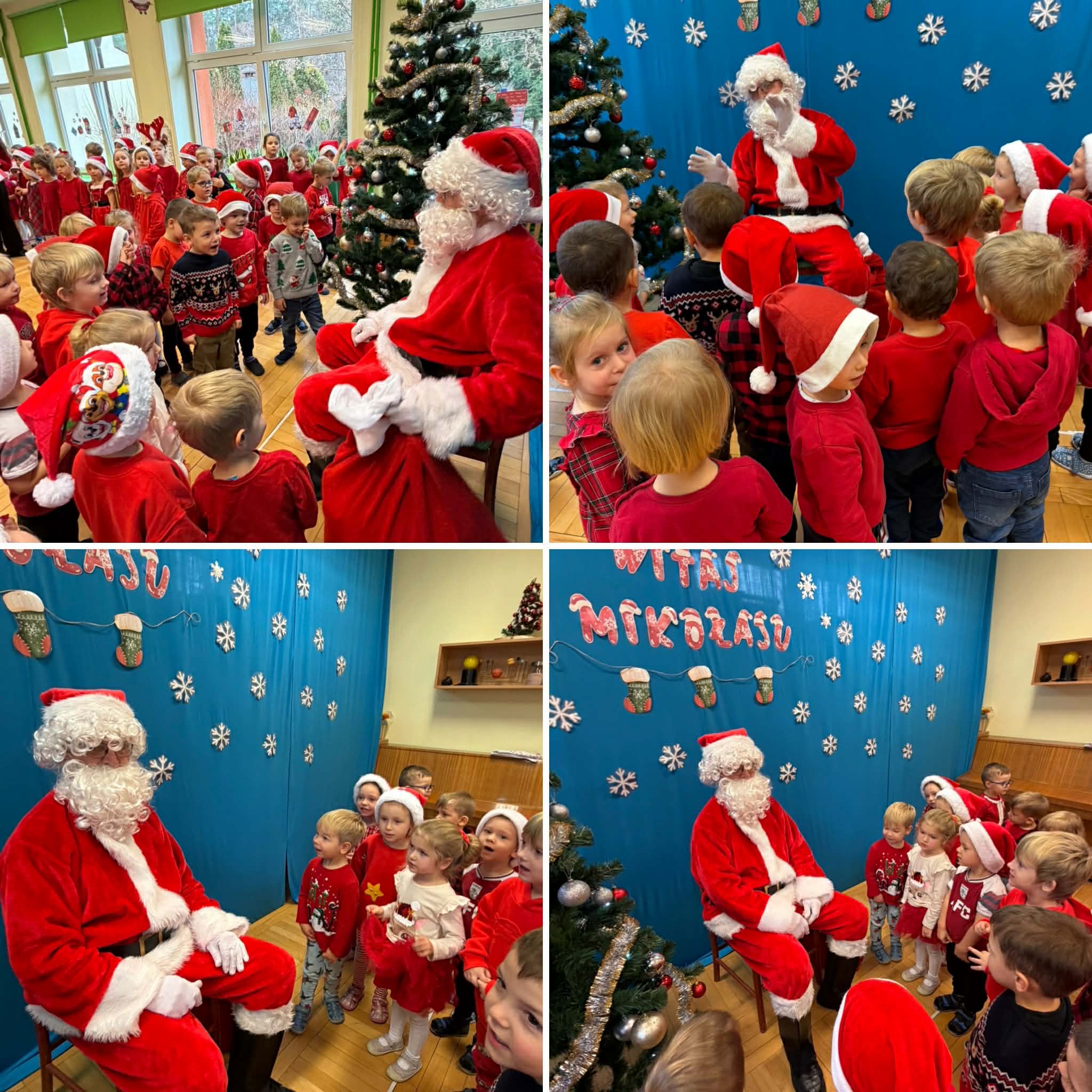 Na początku dnia do naszego przedszkola przybył Święty Mikołaj, na którego dzieci czekały z wielkim przejęciem. Każda z grup zaprezentowała Mikołajowi przygotowaną piosenkę i wierszyk. Po występach Mikołaj odwiedził każdą salę, aby porozmawiać z dziećmi i wręczyć im prezenty. Po rozdaniu upominków Mikołaj ruszył w dalszą drogę, pozostawiając w przedszkolu wiele uśmiechów i wspaniałą atmosferę Chwilę później do grup zawitały również Pani Mikołajowa i Elf, które odwiedziły wszystkie dzieci, wprowadzając jeszcze więcej świątecznego ciepła i radości. To był wyjątkowy dzień, pełen magii i niezapomnianych chwil!