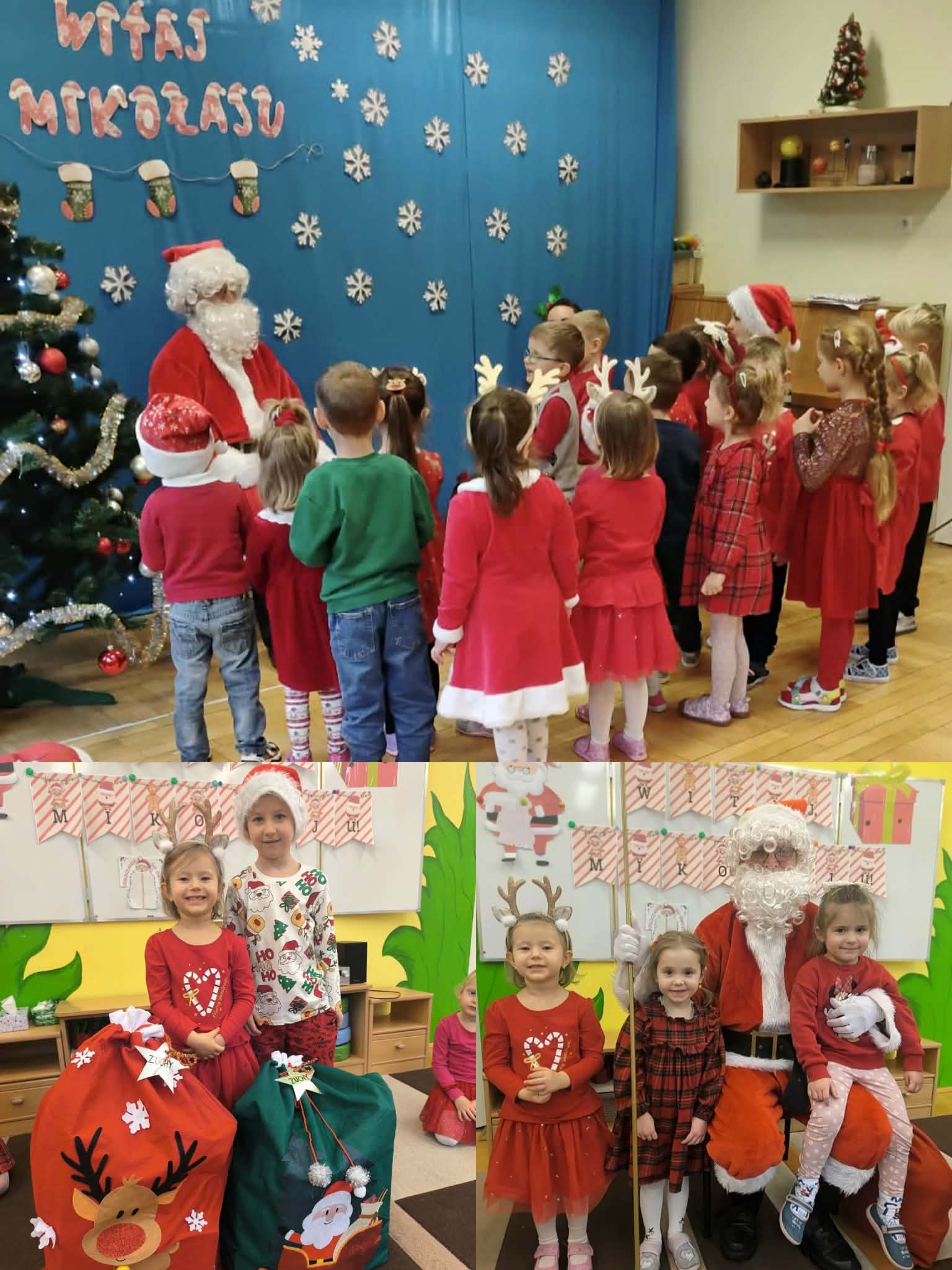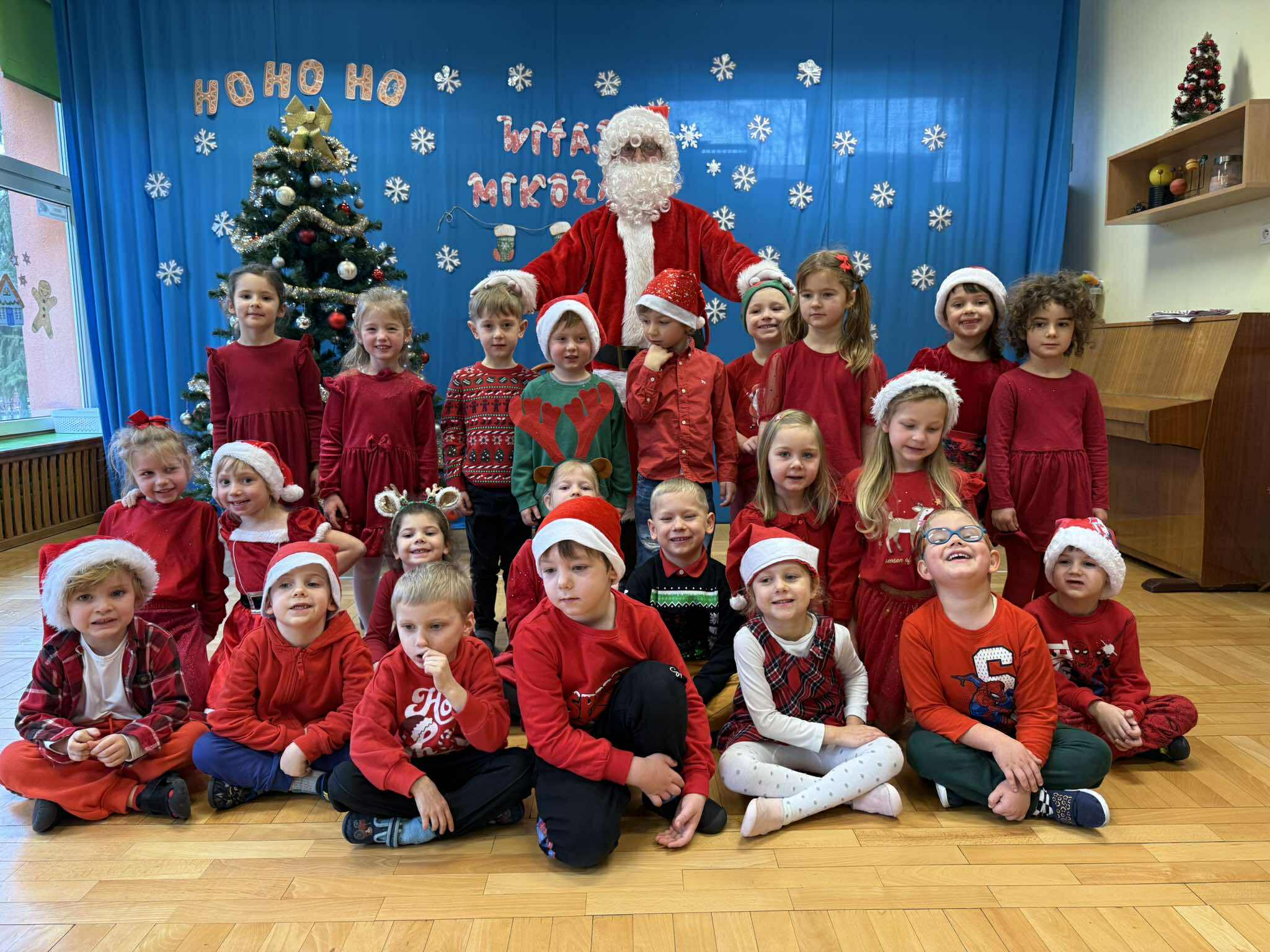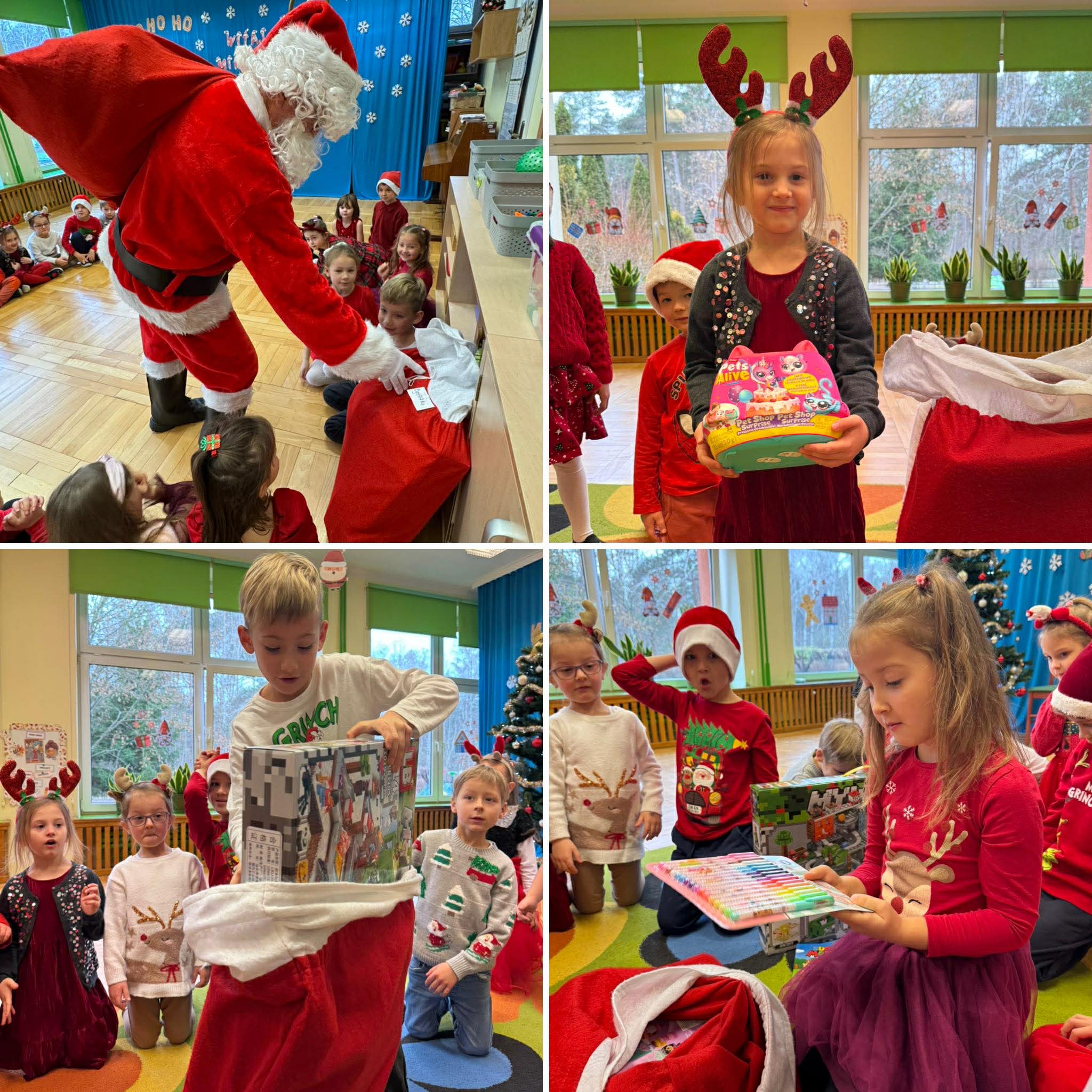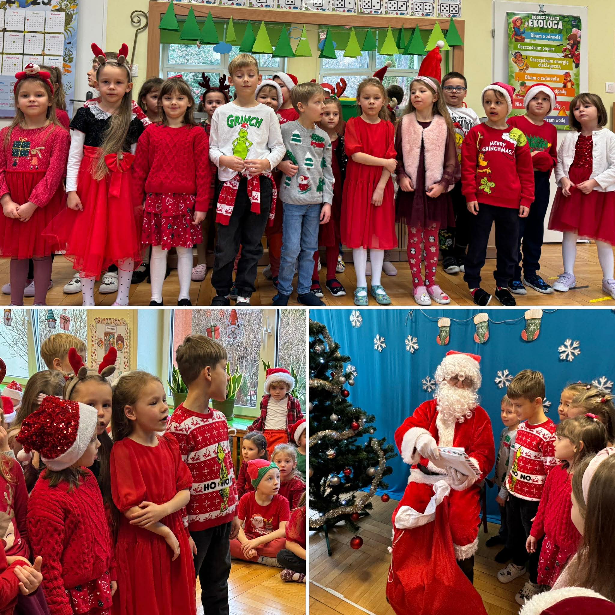 Na początku dnia do naszego przedszkola przybył Święty Mikołaj, na którego dzieci czekały z wielkim przejęciem. Każda z grup zaprezentowała Mikołajowi przygotowaną piosenkę i wierszyk. Po występach Mikołaj odwiedził każdą salę, aby porozmawiać z dziećmi i wręczyć im prezenty. Po rozdaniu upominków Mikołaj ruszył w dalszą drogę, pozostawiając w przedszkolu wiele uśmiechów i wspaniałą atmosferę Chwilę później do grup zawitały również Pani Mikołajowa i Elf, które odwiedziły wszystkie dzieci, wprowadzając jeszcze więcej świątecznego ciepła i radości. To był wyjątkowy dzień, pełen magii i niezapomnianych chwil!