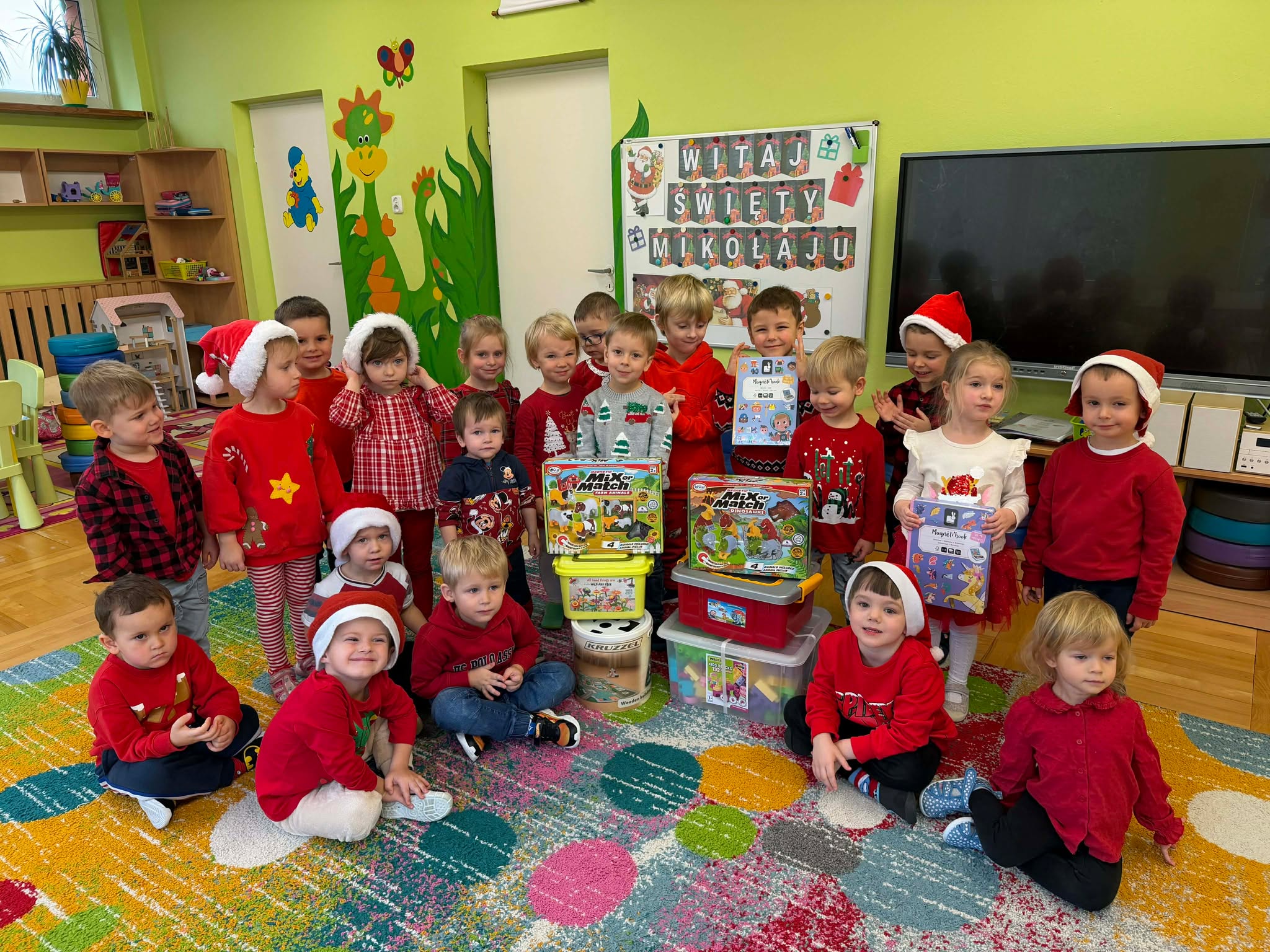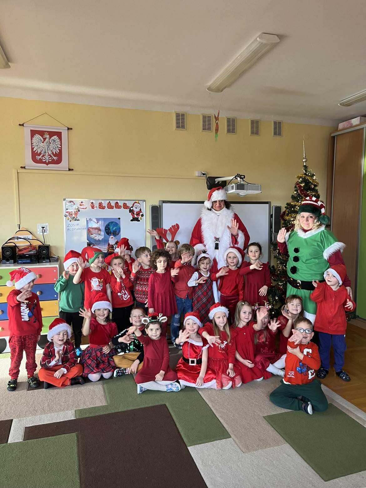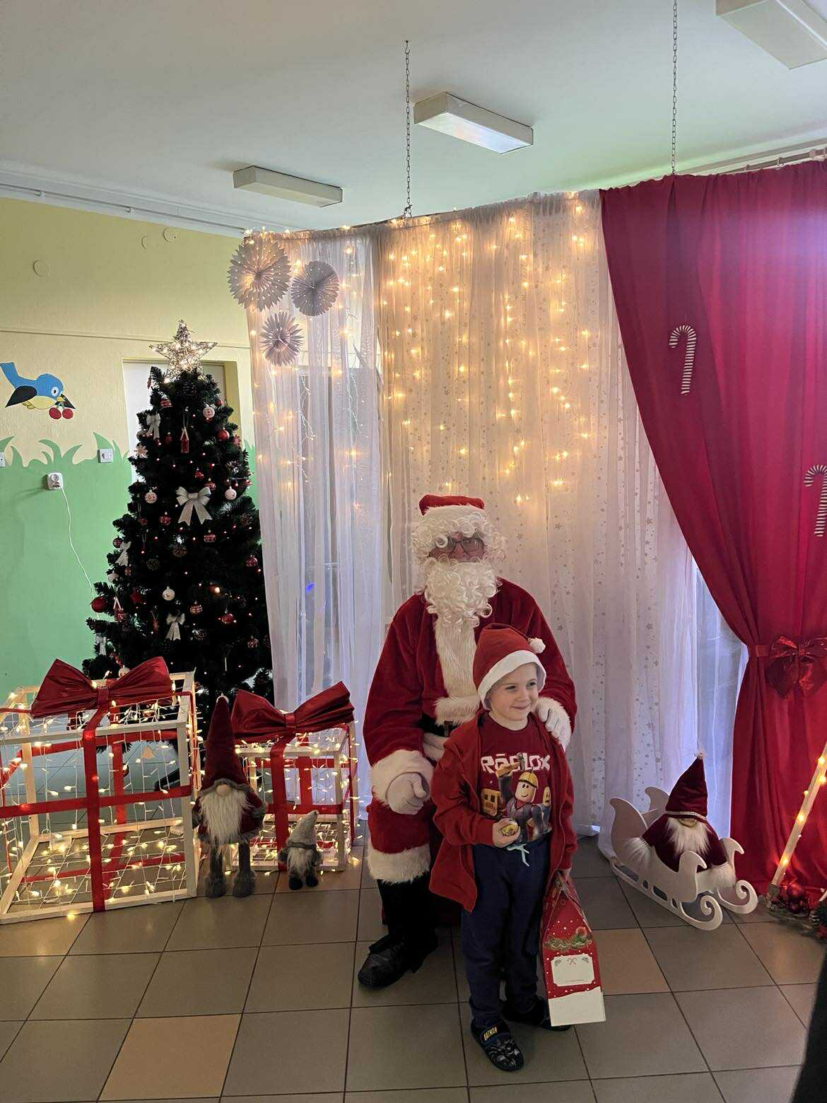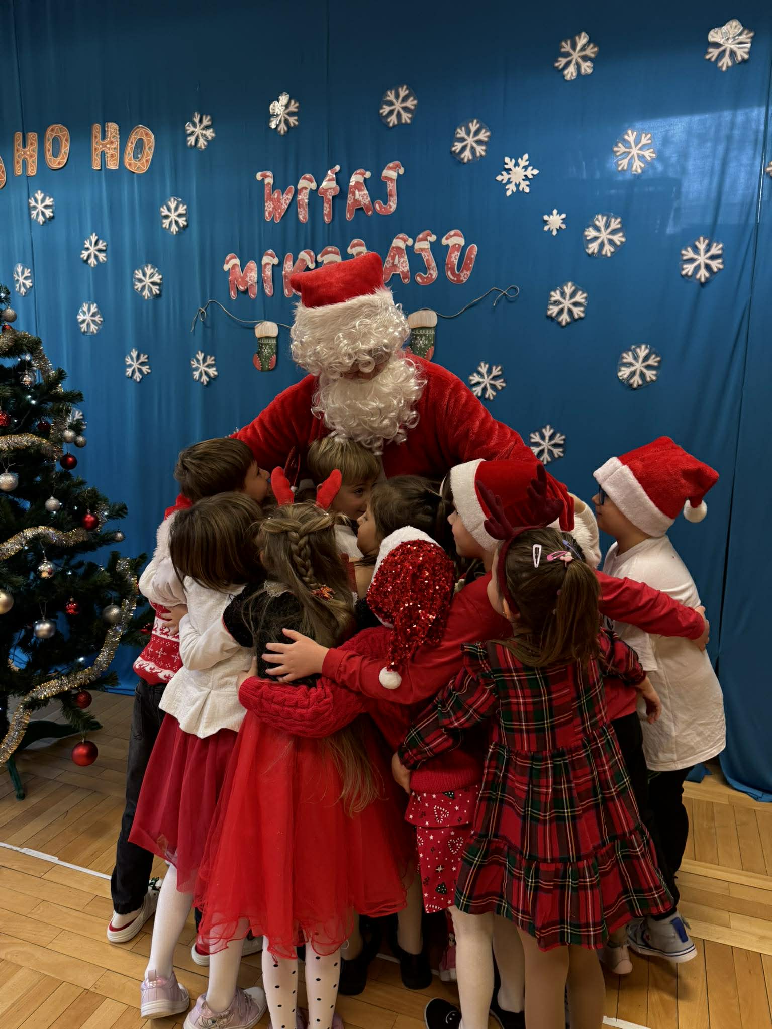 Na początku dnia do naszego przedszkola przybył Święty Mikołaj, na którego dzieci czekały z wielkim przejęciem. Każda z grup zaprezentowała Mikołajowi przygotowaną piosenkę i wierszyk. Po występach Mikołaj odwiedził każdą salę, aby porozmawiać z dziećmi i wręczyć im prezenty. Po rozdaniu upominków Mikołaj ruszył w dalszą drogę, pozostawiając w przedszkolu wiele uśmiechów i wspaniałą atmosferę Chwilę później do grup zawitały również Pani Mikołajowa i Elf, które odwiedziły wszystkie dzieci, wprowadzając jeszcze więcej świątecznego ciepła i radości. To był wyjątkowy dzień, pełen magii i niezapomnianych chwil!