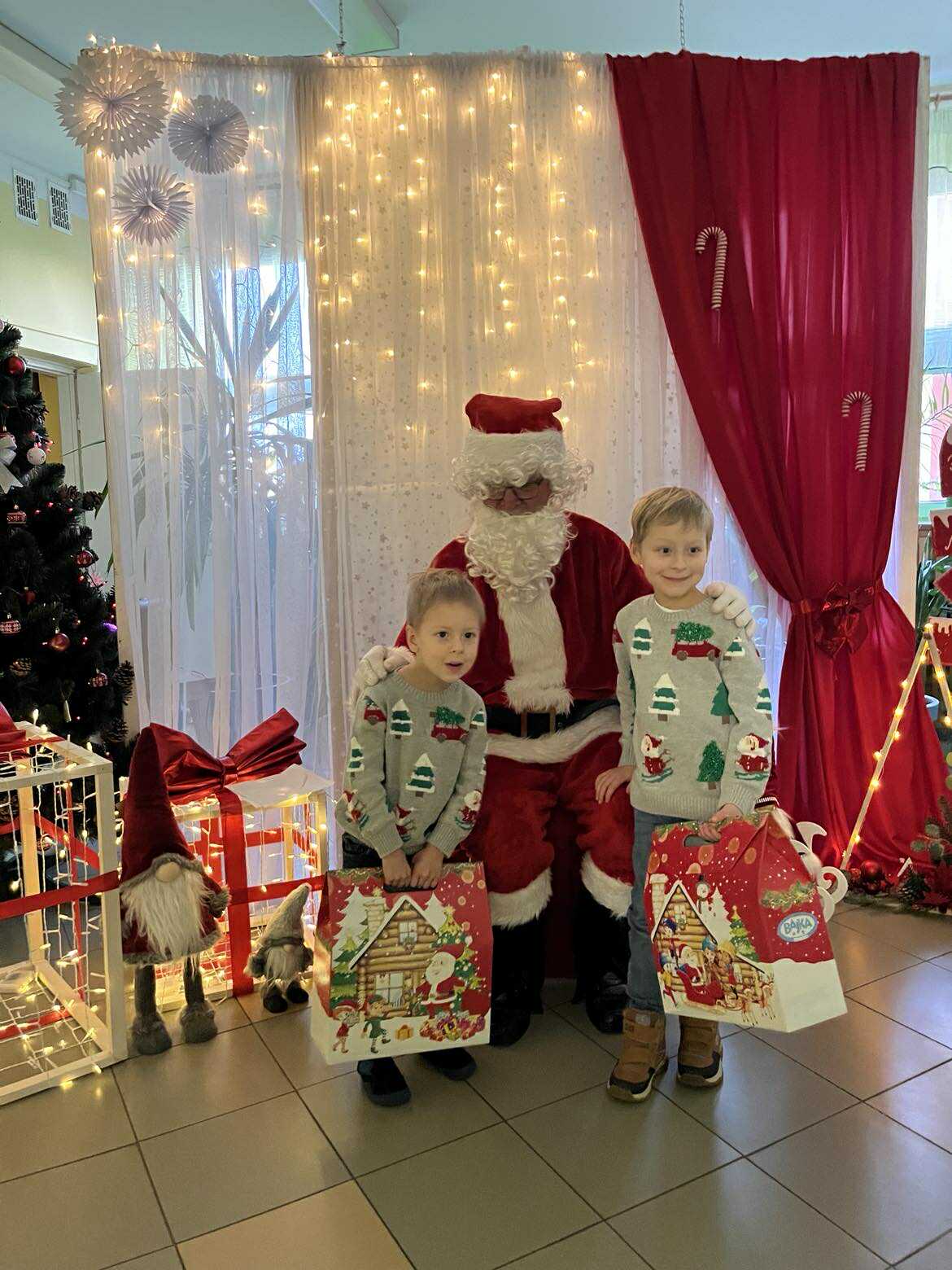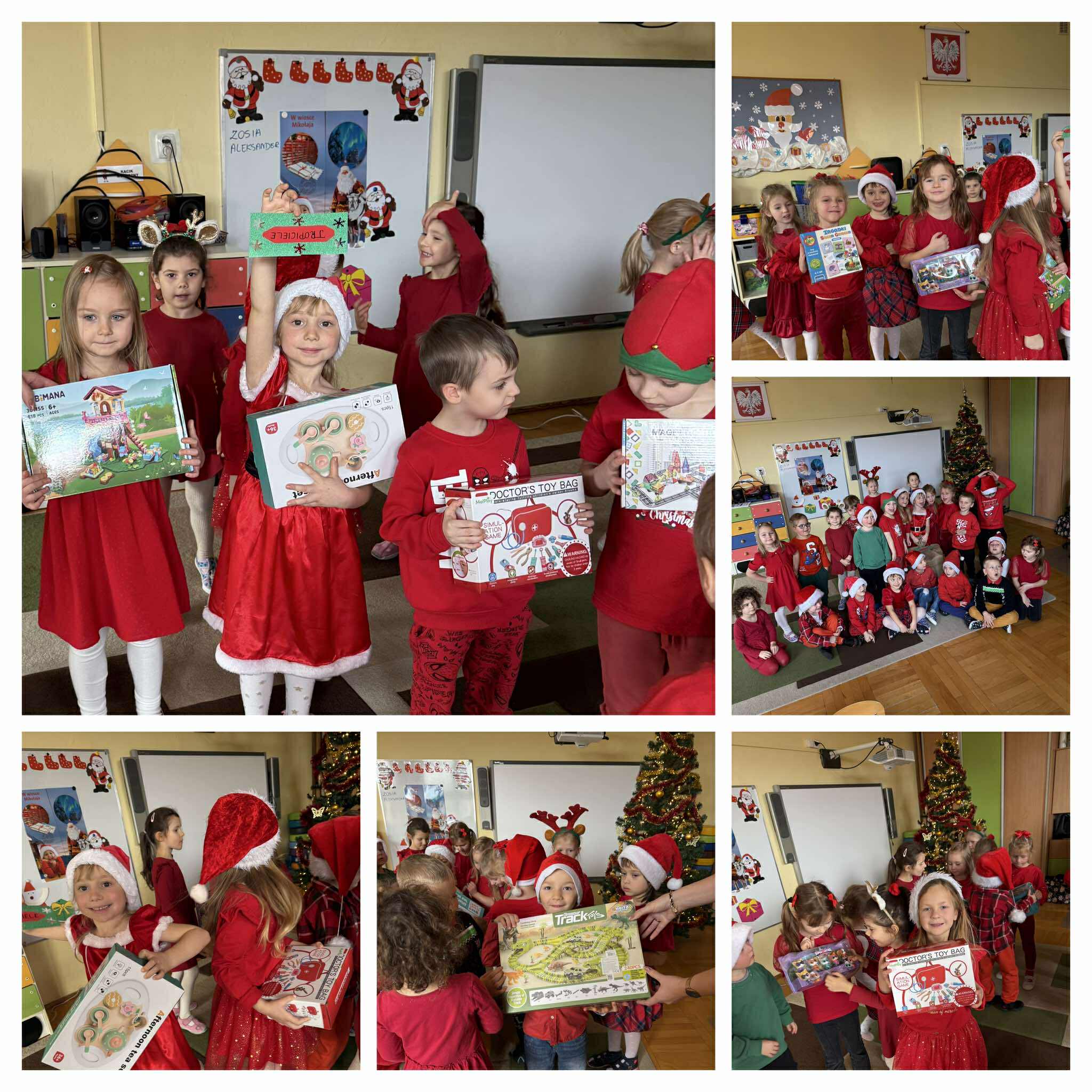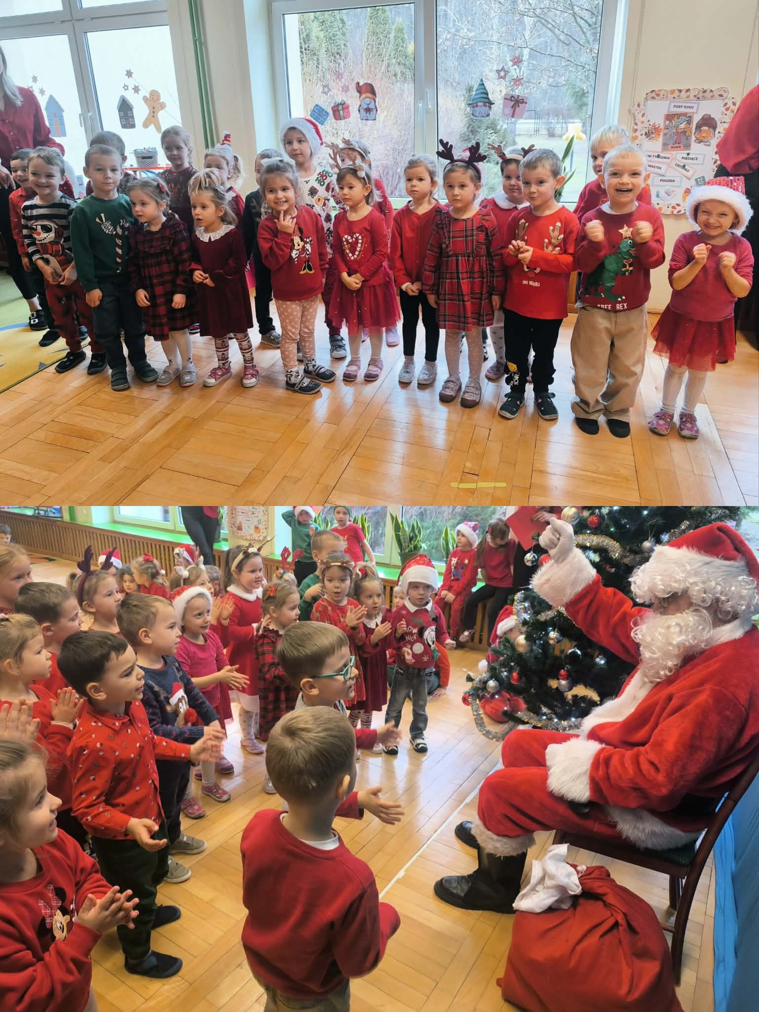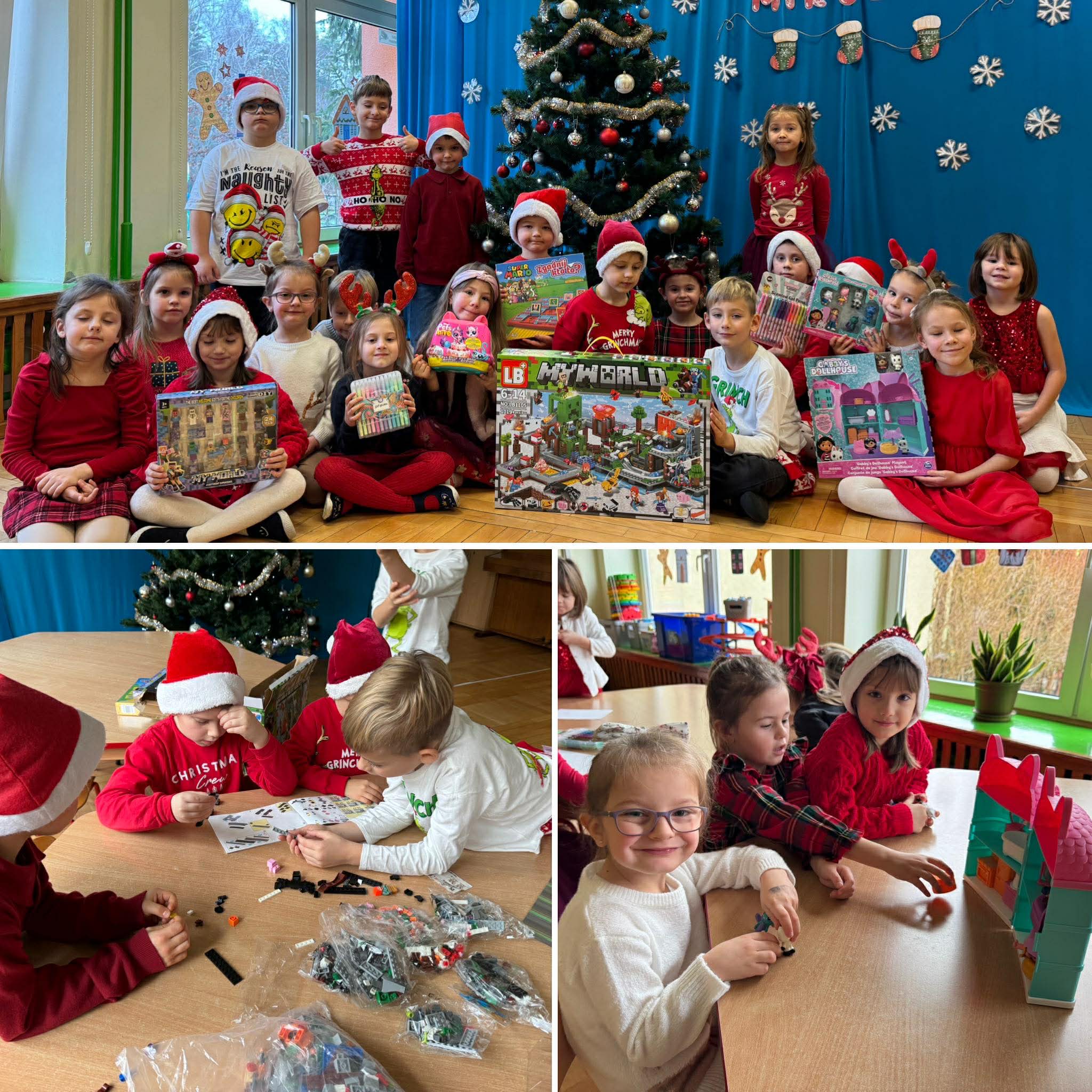 Na początku dnia do naszego przedszkola przybył Święty Mikołaj, na którego dzieci czekały z wielkim przejęciem. Każda z grup zaprezentowała Mikołajowi przygotowaną piosenkę i wierszyk. Po występach Mikołaj odwiedził każdą salę, aby porozmawiać z dziećmi i wręczyć im prezenty. Po rozdaniu upominków Mikołaj ruszył w dalszą drogę, pozostawiając w przedszkolu wiele uśmiechów i wspaniałą atmosferę Chwilę później do grup zawitały również Pani Mikołajowa i Elf, które odwiedziły wszystkie dzieci, wprowadzając jeszcze więcej świątecznego ciepła i radości. To był wyjątkowy dzień, pełen magii i niezapomnianych chwil!