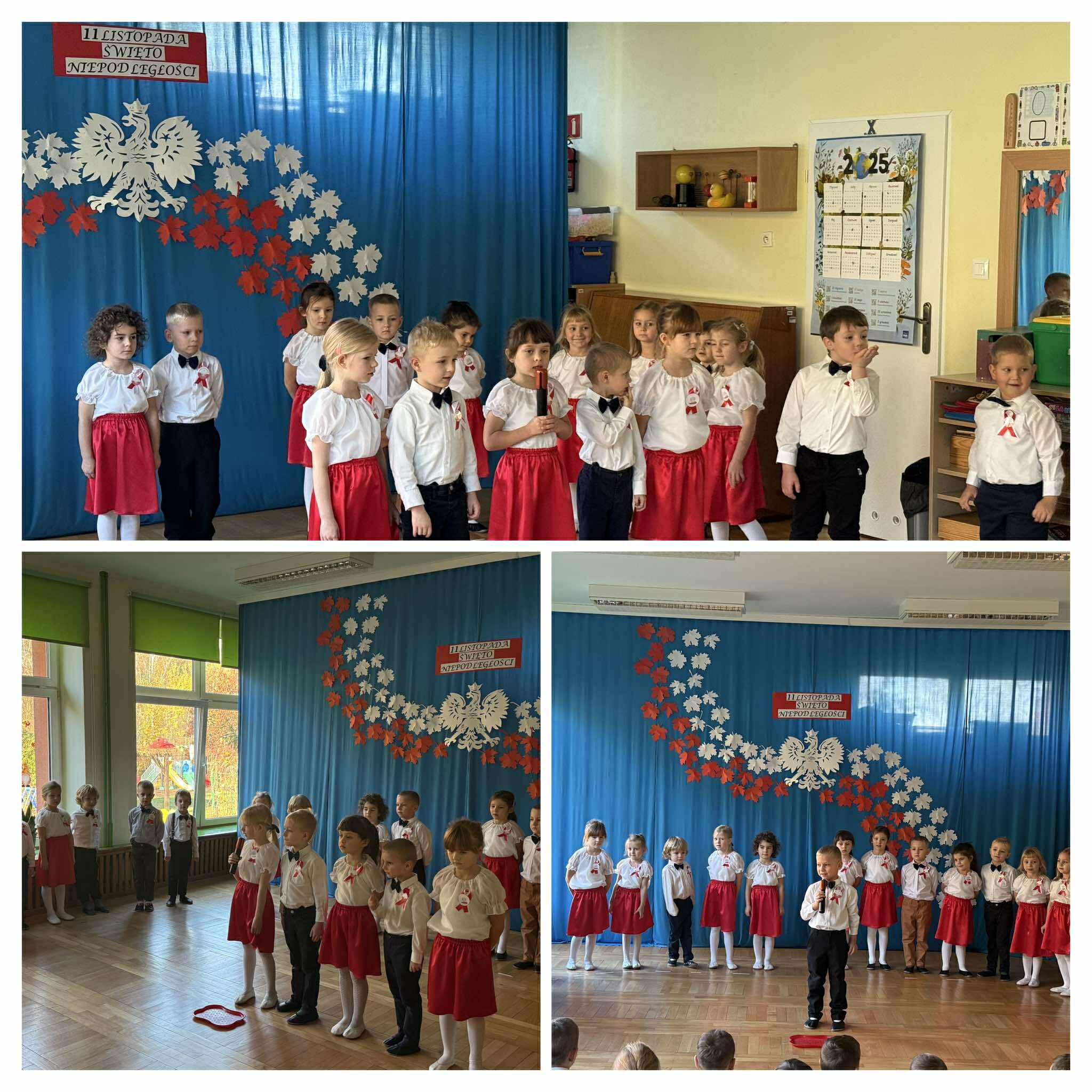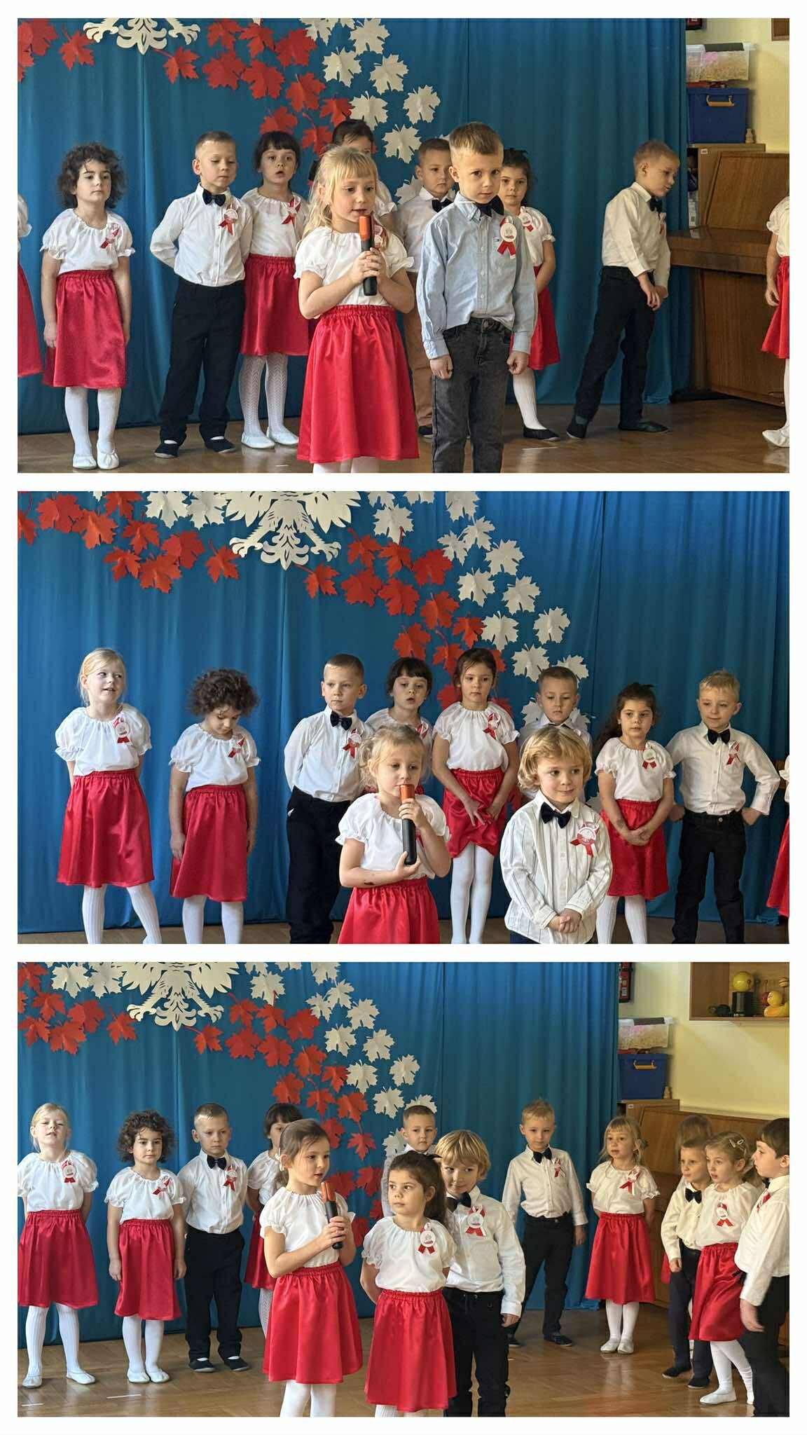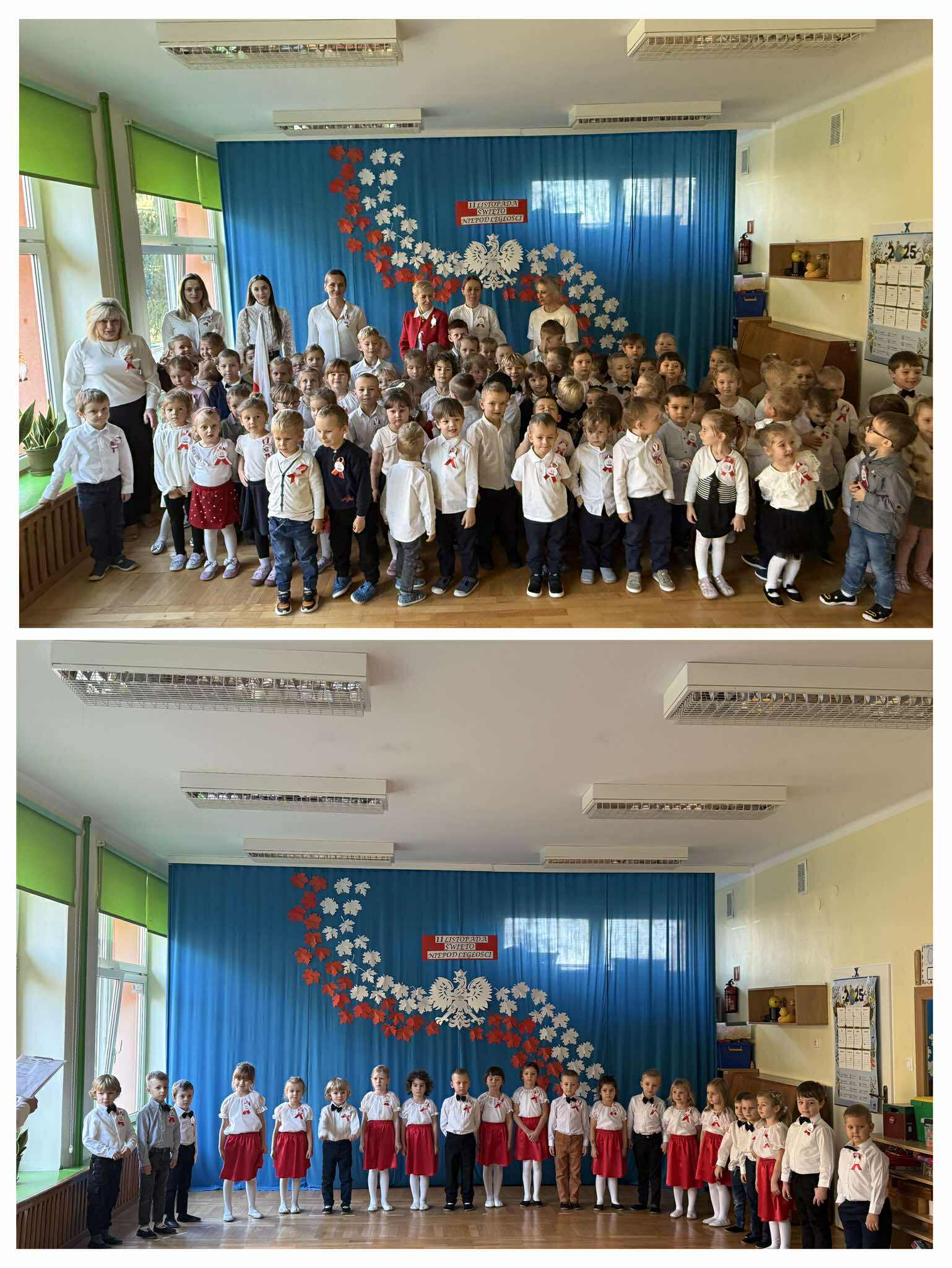 Z okazji Święta Niepodległości dzieci z grupy „Tropiciele” przygotowały piękny występ artystyczny, podczas którego recytowały wiersze patriotyczne oraz śpiewały piosenki o Polsce. Uroczystość rozpoczęła się wniesieniem flagi państwowej przez poczet flagowy oraz wspólnym odśpiewaniem hymnu narodowego w ramach corocznej akcji organizowanej przez Ministerstwo Edukacji „Szkoła do Hymnu”. Dzieci z dużym zaangażowaniem i powagą zaprezentowały swoje umiejętności, oddając hołd bohaterom, którzy walczyli o wolność naszej Ojczyzny. Występ wprowadził wszystkich obecnych w patriotyczny nastrój i był piękną lekcją miłości do Polski.
